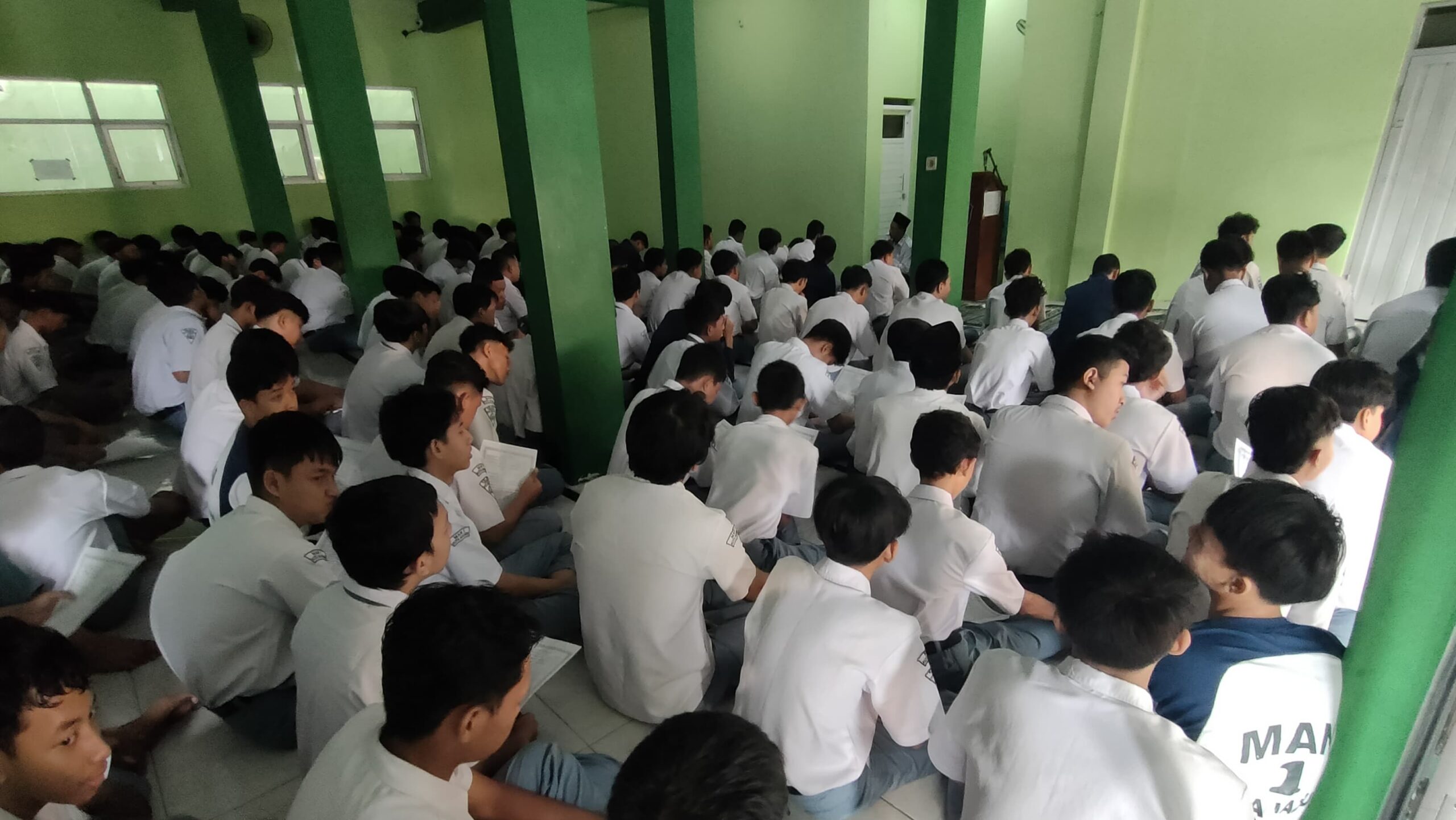 Istighosah rutin dilakukan setiap 2 minggu sekali di hari senin sebagai upaya menanamkan kebiasaan berdzikir pada siswa - siswi MAN 1 Kota Madiun